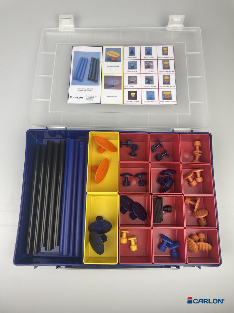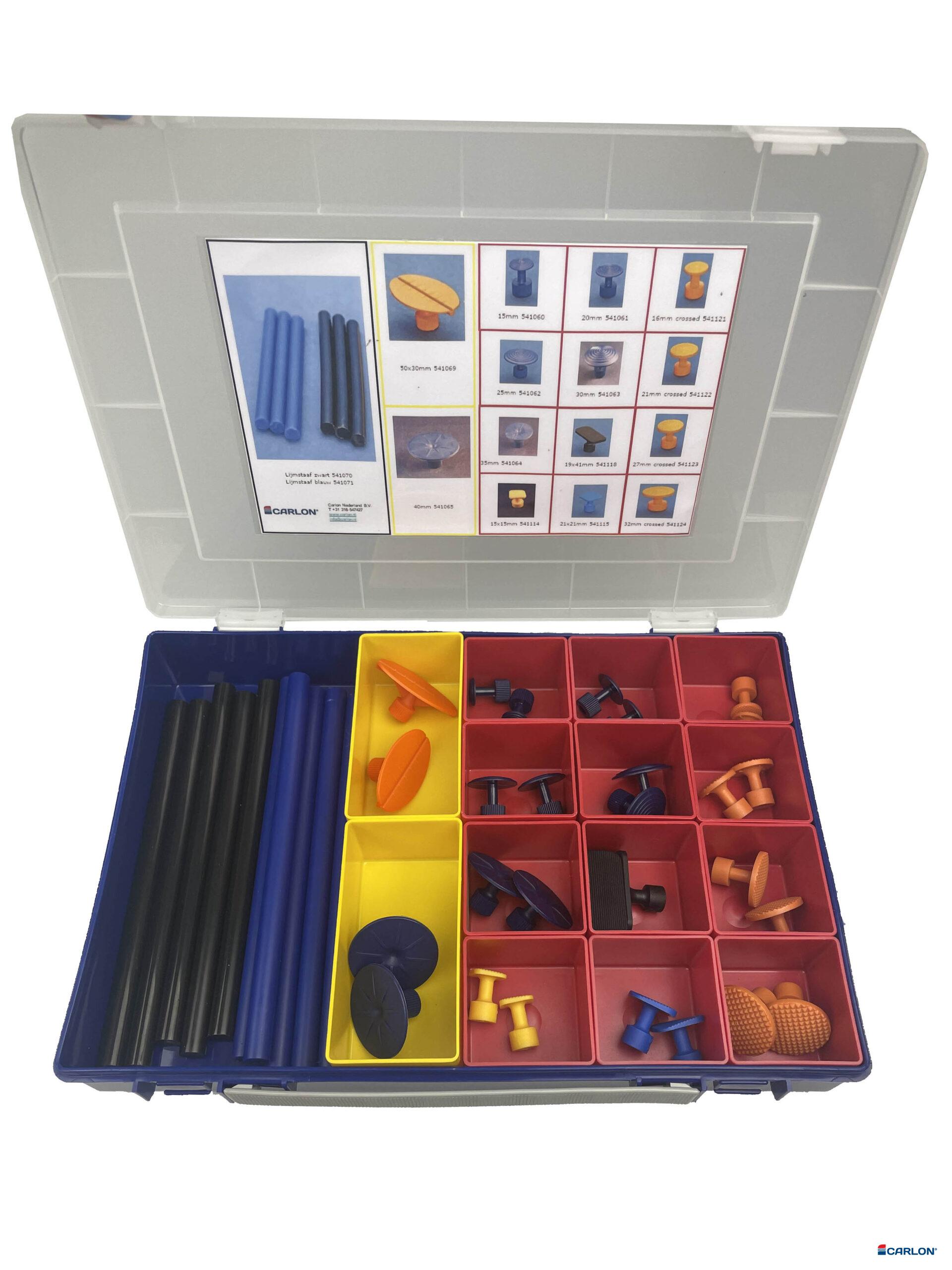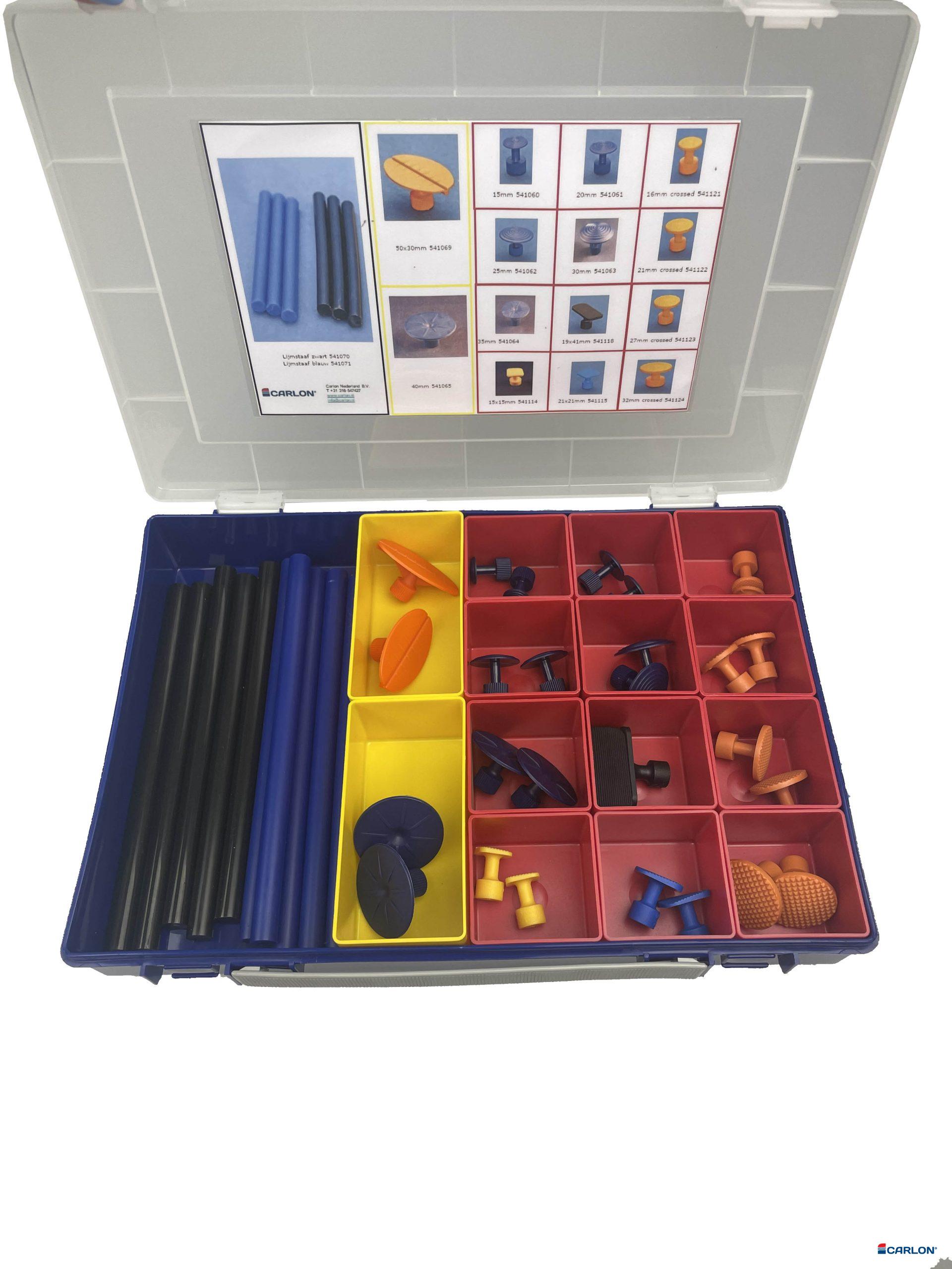– Startset met lijmadapters, voorzien van 2x 541060, 541061, 541062, 541063, 541064, 541065, 541069, 541114, 541115, 541118, 541121, 541122, 541123 en 541124 en 2×5 lijmstaven 541070 en 541071.