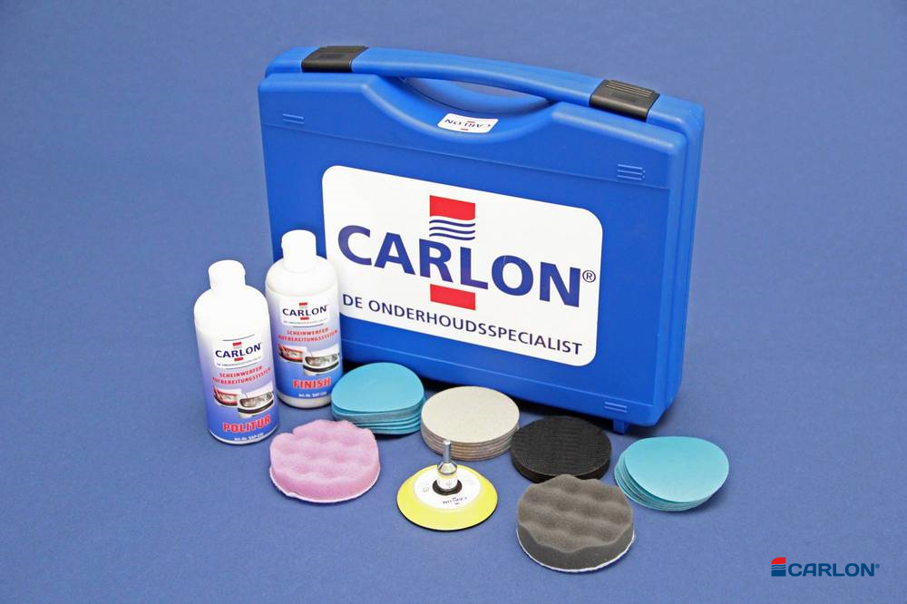 – Met de Carlon Koplamp Polijst Set wordt de eerst de beschadigde laag verwijdert, daarna wordt het oppervlak verfijnd door middel van polijsten en vervolgens met een beschermlaag afgewerkt.