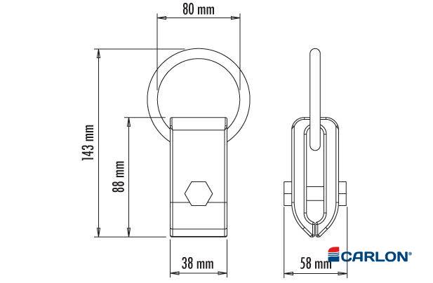 – Breedte 40 mm. – Inklemdiepte tot aan de bout 30mm. – Gewicht 0,7 kg. – Trekgewicht 3T